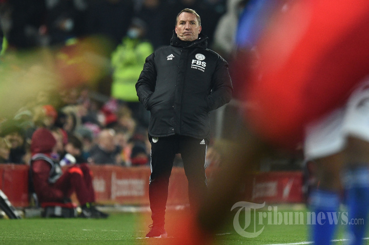 Manajer Leicester City dari Irlandia Utara Brendan Rodgers menyaksikan pertandingan sepak bola perempat final Piala Liga Inggris antara Liverpool dan Leicester City di Anfield di Liverpool, Inggris barat laut pada 22 Desember 2021. (Photo by Oli SCARFF / AFP) / RESTRICTED TO EDITORIAL USE. No use with unauthorized audio, video, data, fixture lists, club/league logos or 'live' services. Online in-match use limited to 120 images. An additional 40 images may be used in extra time. No video emulation. Social media in-match use limited to 120 images. An additional 40 images may be used in extra time. No use in betting publications, games or single club/league/player publications. /