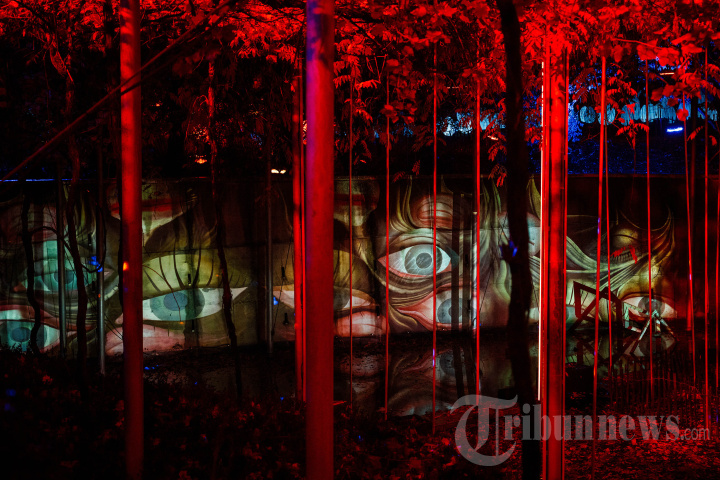 Foto yang diambil di Paris pada 16 November 2023 ini menunjukkan instalasi di pameran Art in Nature, jalan-jalan malam melalui karya seniman Spanyol Salvador Dali di Parc de La Villette. (Photo by Dimitar DILKOFF / AFP)
