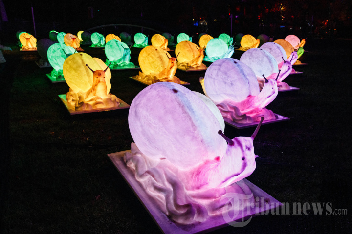 Foto yang diambil di Paris pada 16 November 2023 ini menunjukkan instalasi di pameran Art in Nature, jalan-jalan malam melalui karya seniman Spanyol Salvador Dali di Parc de La Villette. (Photo by Dimitar DILKOFF / AFP)