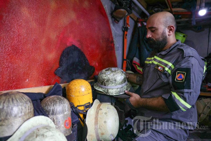 Seorang anggota Pertahanan Sipil Lebanon memeriksa peralatan di pos mereka di lingkungan Cola, Beirut pada 13 Oktober 2024. - Di seluruh negeri, petugas penyelamat berjuang untuk merespons, dengan sumber daya mereka yang telah terkuras oleh krisis ekonomi selama lima tahun dan takut bahwa mereka dapat terbunuh seperti puluhan rekan kerja lainnya selama setahun terakhir. (Photo by IBRAHIM AMRO / AFP)