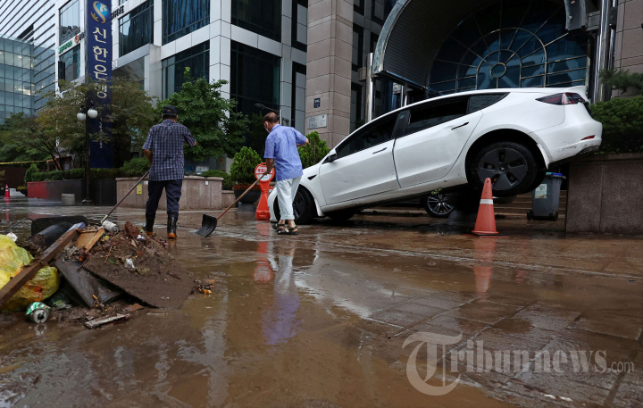 Mobil Mewah Bergelimpangan Tersapu Banjir di Seoul