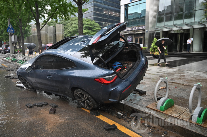 Mobil Mewah Bergelimpangan Tersapu Banjir di Seoul