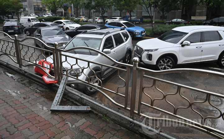Mobil Mewah Bergelimpangan Tersapu Banjir di Seoul