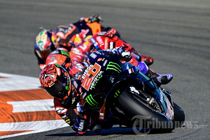 Pembalap Yamaha Prancis Fabio Quartararo berkompetisi selama balapan Grand Prix MotoGP Valencia di arena pacuan kuda Ricardo Tormo di Cheste, dekat Valencia, pada 6 November 2022. (Photo by JAVIER SORIANO / AFP)