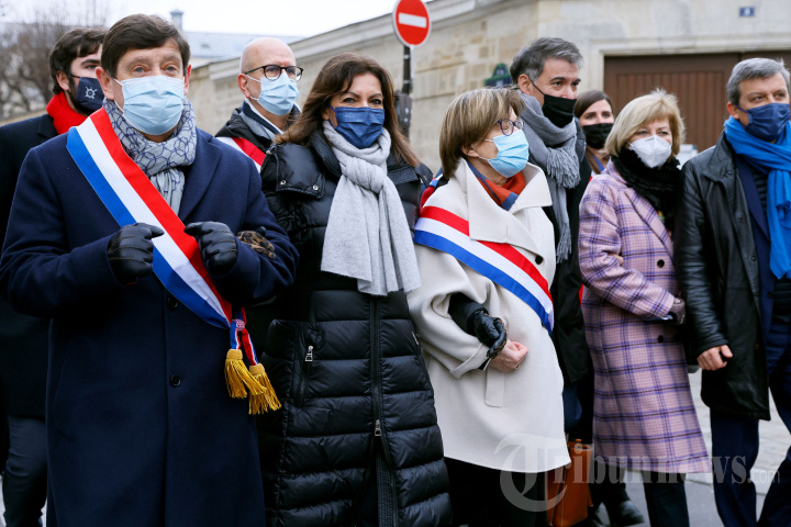 Kandidat presiden Partai Sosialis Prancis (PS) Anne Hidalgo (ke-3 dari kiri), Senator Patrick Kanner (kiri), sekretaris pertama PS Olivier Faure (ke-tiga dari kanan) dan anggota partai lainnya tiba untuk ambil bagian dalam demonstrasi yang diadakan oleh serikat guru Prancis untuk menuntut kejelasan dari pemerintah tentang langkah-langkah coronavirus setelah tiga perubahan aturan Covid-19 untuk ruang kelas dalam waktu seminggu, di Paris pada 13 Januari 2022. - Mereka mengeluh bahwa anggota mereka tidak dapat mengajar dengan benar, tidak cukup terlindungi dari infeksi coronavirus dan sering mendengar tentang perubahan tindakan pencegahan kesehatan melalui media daripada dari atasan. Datang ketika kampanye pemilihan presiden Prancis berlangsung menjelang pemungutan suara April, pemogokan itu tidak nyaman bagi pemerintah yang membanggakan diri menjaga sekolah tetap terbuka untuk mengurangi tekanan pada orang tua melalui pandemi. (Photo by Thomas SAMSON / AFP)