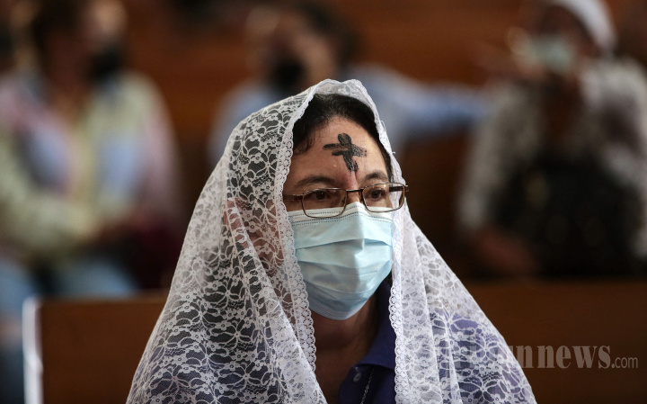 Umat ??Katolik menghadiri misa untuk merayakan Rabu Abu di Katedral Metropolitan di Managua, pada 2 Maret 2022. - Rabu Abu menandai periode Prapaskah Kristen, sebelum Pekan Suci. (Photo by OSWALDO RIVAS / AFP)