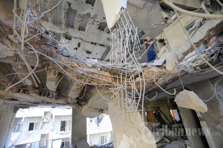 Seorang fotografer mengambil gambar kerusakan di lokasi serangan Israel semalam di pinggiran selatan Beirut, Ghobeiry, pada tanggal 30 September 2024. (Photo by AFP)