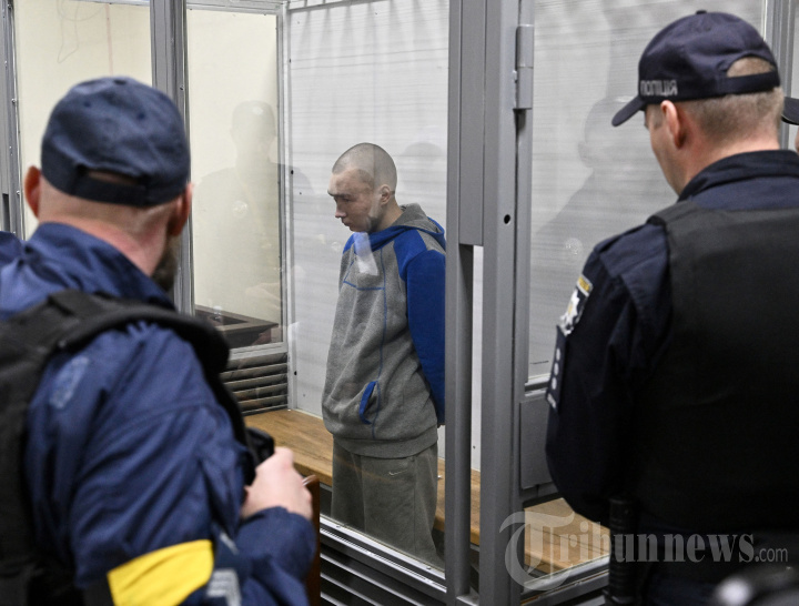 Tentara Rusia Vadim Shishimarin berdiri di depan kotak terdakwa pada pembukaan persidangannya atas tuduhan kejahatan perang karena telah membunuh seorang warga sipil, di pengadilan distrik Solomyansky di Kyiv pada 18 Mei 2022. - Tentara yang ditangkap dituduh membunuh 62- warga sipil berusia satu tahun -- diduga sedang bersepeda -- di dekat desa Chupakhivka di timur laut wilayah Sumy Ukraina pada 28 Februari, pada hari-hari pertama serangan Rusia. Shishimarin mengaku bersalah dan menghadapi kemungkinan hukuman penjara seumur hidup di Kyiv.