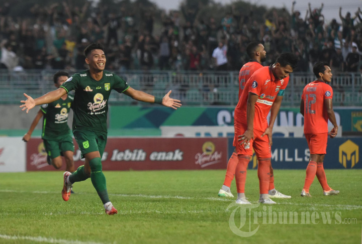 Para pemain Persebaya melakukan selebrasi usai membobol gawang Tim Borneo FC pada laga home yang dilangsungkan di Gelora Joko Samudro Gresik, Jatim, Jumat (3/2/2023). Pada akhir pertandingan, Persebaya berakhir mengungguli Borneo FC Samarinda 3-2 melalui gol Sho Yamamoto, Alta Ballah dan Dani. (SURYA/HABIBUR ROHMAN)