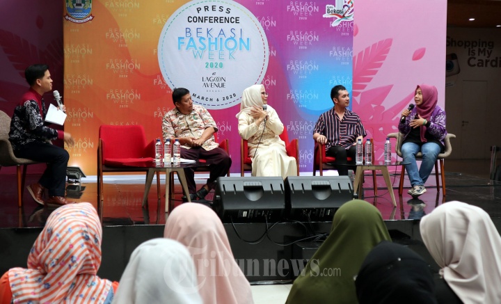 Memasuki tahun Ke-3 Bekasi Fashion Week (BFW) 2020 bertajuk Diversity akan segera digelar pada 27 - 29 Maret 2020 di Atrium Lave Mall (Lagoon Avenue) Bekasi yang diikuti 30 designer. Hadir dalam konperensi pers Andi Mulyono, Kasi Promosi Dinas Perdagangan dan Perindustrian Kota Bekasi, Designer Nina Nugroho, Inawati panitia BFW 2020 dan puluhan dedigner pemula, Jumat (6/3/2020) di Atrium Lave Mail (tagoon Avenue) Bekasi. TRIBUNNEWS.COM/FX ISMANTO