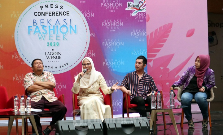 Memasuki tahun Ke-3 Bekasi Fashion Week (BFW) 2020 bertajuk Diversity akan segera digelar pada 27 - 29 Maret 2020 di Atrium Lave Mall (Lagoon Avenue) Bekasi yang diikuti 30 designer. Hadir dalam konperensi pers Andi Mulyono, Kasi Promosi Dinas Perdagangan dan Perindustrian Kota Bekasi, Designer Nina Nugroho, Inawati panitia BFW 2020 dan puluhan dedigner pemula, Jumat (6/3/2020) di Atrium Lave Mail (tagoon Avenue) Bekasi. TRIBUNNEWS.COM/FX ISMANTO