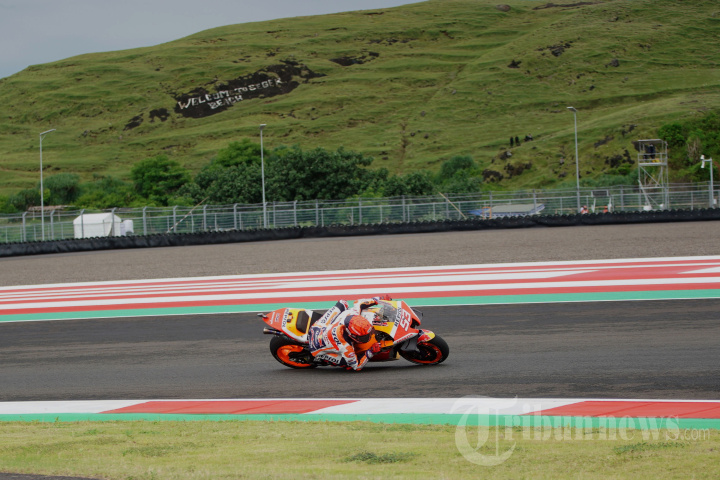 Pembalap dari tim Repsol Honda Marc Marquez mengikuti latihan bebas sesi 1 MotoGP di Pertamina Mandalika International Street Circuit di KEK Mandalika, Desa Kuta, Kecamatan Pujut, Praya, Lombok Tengah, NTB, Jumat (18/3/2022). TRIBUNNEWS/IRWAN RISMAWAN