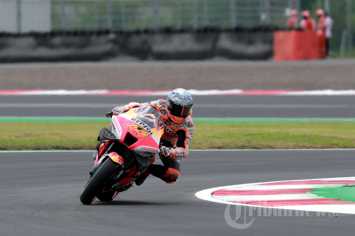 Pembalap dari tim Repsol Honda Pol Espargaro mengikuti latihan bebas sesi 1 MotoGP di Pertamina Mandalika International Street Circuit di KEK Mandalika, Desa Kuta, Kecamatan Pujut, Praya, Lombok Tengah, NTB, Jumat (18/3/2022). TRIBUNNEWS/IRWAN RISMAWAN