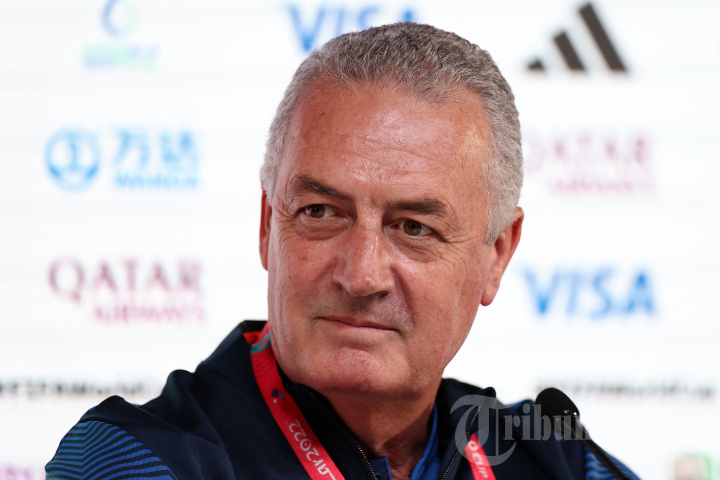 Pelatih Ekuador asal Argentina Gustavo Alfaro menghadiri konferensi pers di Qatar National Convention Center (QNCC) di Doha pada 19 November 2022 menjelang pertandingan sepak bola Piala Dunia Qatar 2022 antara Qatar dan Ekuador. (Photo by KARIM JAAFAR / AFP)