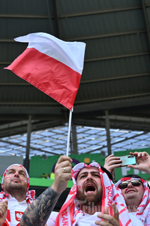 Pendukung Timnas Polandia hadir dalam laga sepak bola Grup C Piala Dunia 2022 Qatar antara Polandia melawan Arab Saudi di Education City Stadium, di Al-Rayyan, barat Doha, Qatar, Sabtu (26/11/2022). AFP/GLYN KIRK