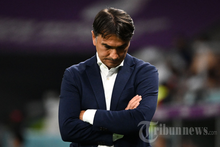 Ekspresi pelatih Timnas Kroasia, Zlatko Dalic dalam laga sepak bola Grup F Piala Dunia 2022 Qatar antara Kroasia melawan Belgia di Stadion Ahmad Bin Ali, di Al-Rayyan, barat Doha, Qatar, Kamis (1/12/2022) waktu setempat. AFP/OZAN KOSE