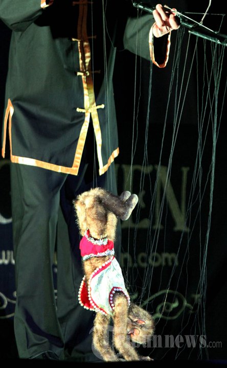 Seniman wayang China memainkan wayang Fujian dalam pertunjukkan di Graha Sanusi Hardjadinata, Kampus Unpad, Jalan Dipati Ukur, Kota Bandung, Senin (11/5/2015). Dalam pertunjukkan tersebut dipentaskan bermacam-macan wayang China lainnya dan wayang Ajen dari Jawa Barat. TRIBUN JABAR/GANI KURNIAWAN