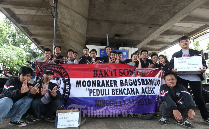 GALANG DANA UNTUK ACEH - Anggota organisasi sepeda motor Moonraker Bagusrangin melakukan aksi sosial penggalangan dana dari pengendara bermotor, di Jalan Ir H Djuanda, Kota Bandung, Minggu (11/12/2016). Hasil penggalangan dana yang dilakukan sekelompok anak muda ini akan didonasikan untuk korban bencana gempa di Aceh melalui Palang Merah Indonesia (PMI). TRIBUN JABAR/GANI KURNIAWAN
