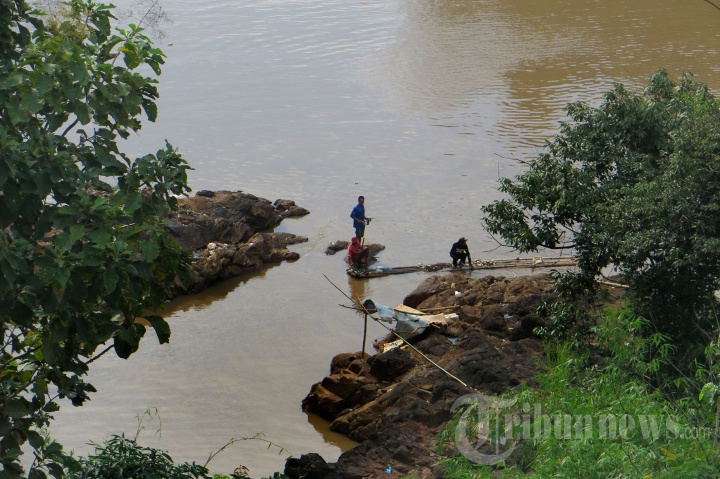 Sejumlah warga memancing ikan di Sungai Citarum area Curug Jompong, Desa Lagadar, Kecamatan Margaasih, Kabupaten Bandung, Senin (01/06/2020). Meskipun air sungai masih keruh bewarna kuning kecoklatan, sampah plastik jumlahnya sudah semakin sedikit. Program Citarum Harum yang dilaksanakan oleh prajurit Kodam III Siliwangi berdampak dengan berkurangnya sampah pelastik di aliran Sungai Citarum. (Tribun Jabar/Zelphi)