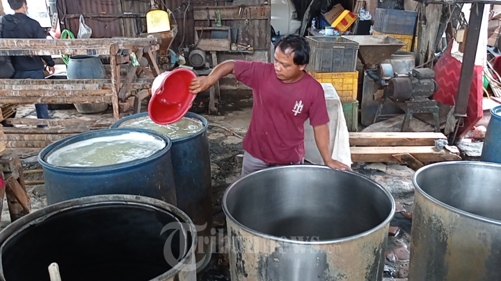 PERAJIN TAHU - Perajin tahu dan tempe di Kota Tangerang, melakukan aksi mogok produksi selama 3 hari mulai tanggal 21-23 Februari. Mogok produksi ini dilakukan menyikapi kenaikan harga jual kacang kedele yang menjadi bahan baku pembuatan tahu dan tempe. Kenaikan ini membuat perajin menjerit dan terancam bangkrut karena kenaikan harga tersebut tidak sebanding dengan biaya produksi. WARTA KOTA/NUR ICHSAN