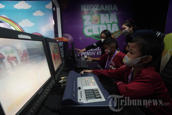 Anak Panti Asuhan Muhammadiyah Putat dan Panti Asuhan Baitul Hijrah tengah belajar, mengeksplorasi, dan merasakan berbagai profesi melalui taman bermain edukasi dan interaksi di KidZania, Kota Surabaya, Jawa Timur, Kamis (14/4/2022). Ratusan anak panti asuhan oleh QNET diajak berbuka puasa bersama dan pemberian santunan kepada seratus anak yatim di KidZania Surabaya sebagai bagian menyebarkan keceriaan dan kebahagiaan selama bulan suci Ramadan. SURYA/AHMAD ZAIMUL HAQ