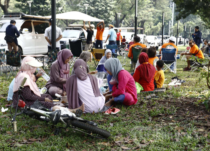 Komunitas Camper Van Indonesia DKI Jakarta 013 melakukan kopi darat (kopdar) di kawasan parkir timur, Senayan, Jakarta Pusat, Minggu (19/6/2022). Komunitas ini sebagai wadah bagi para penggemar kegiatan berkemah di alam terbuka dengan mobil namun mereka ini tak ingin terlalu repot dengan persiapan yang lebih detail jika ingin berkegiatan di alam bebas. Warta Kota/YULIANTO