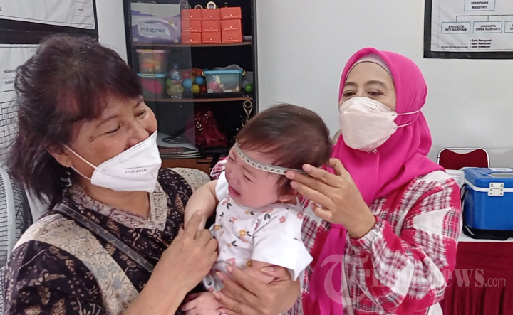 Tim medis dari Dinas Kesehatan Kota Tangerang bersama Kader Posyandu Wijaya Kusuma RW 06 Kelurahan Pondok Pucung, Kecamatan Karang Tengah, Kota Tangerang, memberikan layanan kesehatan pada pelaksanaan program Bulan Imunisasi Anak Nasional (BIAN), Senin (1/8/2022). Pemkot Tangerang, mulai mencanangkan program BIAN secara bertahap selama satu bulan dan mendapat dukungan dari masyarakat setempat agar anak mereka sehat dan terhindar dari penyakit berbahaya, selain itu untuk mengejar cakupan imunisasi yang menurun signifikan akibat pandemi serta ada pemberian imunisasi tambahan seperti campak, rubela dan melengkapi dosis imunisasi polio, DPT- HB- Hib, yang terlewat. Warta Kota/Nur Ichsan