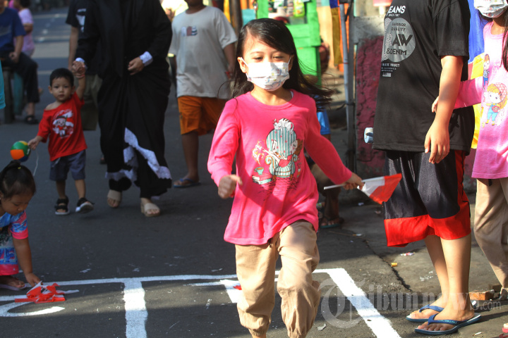 Anak-anak antusias mengikuti perlombaan 17 Agustusan di Jalan Cipinang Muara 3 Jakarta Timur, Minggu (14/8/2022). Perlombaan dalam rangka memeriahkan HUT ke-77 RI kembali diselenggarakan di sejumlah tempat setelah dua tahun ditiadakan akibat pandemi Covid-19. TRIBUNNEWS/HERUDIN