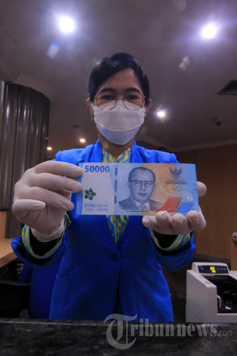 Teller memperlihatkan pecahan uang Rupiah baru di Kantor Layanan Utama Bankaltimtara, Jalan Jenderal Sudirman, Kota Samarinda, Kalimantan Timur, Rabu (7/9/2022). Pecahan uang Rupiah baru telah tersedia sekira sepekan terakhir dan telah disosialisasikan di Bankaltimtara Cabang Utama Samarinda, Kalimantan Timur. TRIBUN KALTIM/NEVRIANTO HARDI PRASETYO