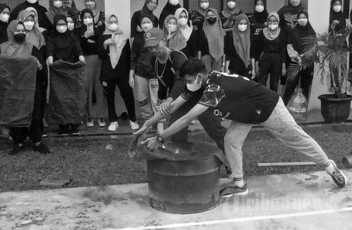 Sebanyak 88 orang mahasiswa Poltekkes Banten, Kota Tangerang, mengikuti latihan tanggap bencana mengatasi bahaya kebakaran di bawah arahan Tenaga Sukarela PMI Kota Tangerang, Selasa (4/10/2022). Kegiatan tanggap bencana ini merupakan bagian dari praktek mata kuliah gawat darurat dan kebencanaan dengan tujuan agar para pesertanya kelak memiliki bekal terhadap tanggap bencana yang terjadi di tengah masyarakat. (Warta Kota/Nur Ichsan)
