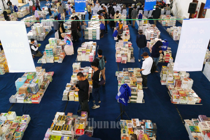 Pengunjung melihat buku yang digelar dalam Liga Buku Jabar Juara 2023 bertajuk "Jabar Juara Cinta Literasi" di GOR Saparua, Kota Bandung, Jawa Barat, Jumat (22/9/2023). Gelaran bazar buku dan panggung literasi yang diselenggarakan Ikatan Penerbit Indonesia Jawa Barat (IKAPI Jabar) itu menghadirkan 5.000 judul buku dari 50 lebih penerbit dengan memberikan diskon yang bervariasi hingga 90 persen lebih. Acara yang akan berlangsung hingga 1 Oktober 2023 tersebut juga menggelar aneka lomba, talkshow, dan community talk. (TRIBUN JABAR/GANI KURNIAWAN)