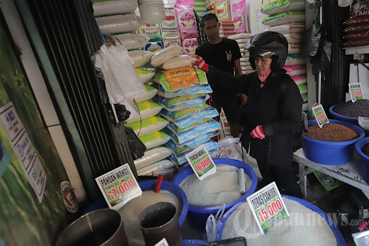 Calon pembeli memilih beras di Toko Beras Udin Jaya, Kebayoran Lama, Jakarta Selatan, Senin (12/2/2024). Kenaikan harga beras dipasaran melambung tinggi. Bahkan untuk harga termurah mencapai Rp 13.000 per kg dan harga termahal Rp 17.000 per kg untuk jenis beras premium. Tribunnews/Jeprima