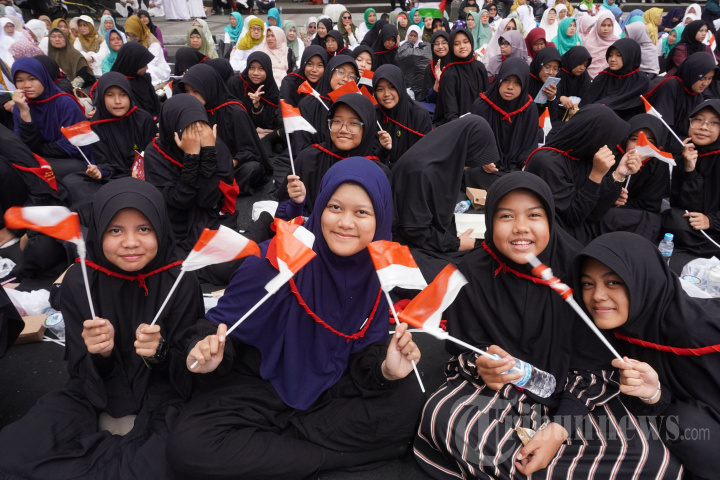 Umat muslim mengikuti Istighotsah Kubro Jawa Barat di depan Gedung Sate, Jalan Diponegoro, Kota Bandung, Jawa Barat, Sabtu (9/3/2024). Acara yang digelar menjelang Bulan Suci Ramadan 1445 H tersebut sebagai wujud doa dan harapan bersama agar Jawa Barat aman dan nyaman serta ada dalam lindungan-Nya. (TRIBUN JABAR/GANI KURNIAWAN)