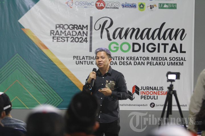 CEO Motiv ID Irwansyah Iwen Chava, memberikan Pelatihan cara digital marketing dalam rangkaian Kegiatan Ramadan Fest 2024 di Kecamatan Pamijahan, Bogor Barat, Jawa Barat, akhir pekan lalu. Jurnalis Indonesia Peduli (JIP), menggelar ajang tahunan Ramadhan Fest 2024 dengan mengusung tema Ramadan Go Digital. Diisi dengan pelatihan konten kreator bagi para pemuda di tiga desa Kecamatan Pamijahan, Bogor Barat, Jawa Barat, yang berlangsung selama dua hari 30-31 Maret 2024. Acara tersebut didukung oleh Kemenparekraf, Indofood, Antam, Lembaga Cissrec, Tapro Music and Publisher, Yasmin Mineral, Wisata Lembah Anyar, Wisata Lembah Batu dan Pemerintah Kecamatan Pamijahan. WARTA KOTA/ANGGA BHAGYA NUGRAHA