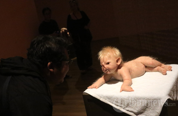 Pengunjung mengamati salah satu instalasi patung life size karya Patricia Piccinini di Museum Macan, Kebon Jeruk, Jakarta Barat, Selasa (28/5/2024). Pameran yang bertajuk Care tersebut menampilkan kurang lebih empat puluh patung, instalasi video serta Celestial Field yang mengeksplorasi bentuk-bentuk baru atau evolusi yang terjadi pada manusia, tumbuhan, hewan dan benda mengenai tubuh, seksualitas, dan rasa welas asih yang berlangsung hingga 6 Oktober 2024. Warta Kota/Yulianto