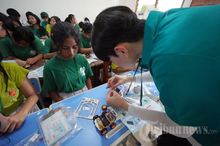 Relawan Hana Bank berpartisipasi melakukan aksi sosial dalam Global CSR Orientations Day di Yayasan Sinar Cahaya Kasih (Sekolah SD, SMP, SMA) yang ada di Bogor, Jawa Barat, Senin (26/8/2024). Komunitas HFG Smart Ambassador merupakan perkumpulan mahasiswa yang tergabung dari berbagai Universitas di Korea yang aktif melakukan kegiatan sosial. Hana Bank Indonesia turut mendukung kegiatan ini, di mana sebanyak 20 karyawan berperan aktif menjadi relawan (volunteer) yang bekerja sama melakukan berbagai macam aktivitas untuk meningkatkan keterampilan dan pengetahuan para siswa di antaranya; kelas Kesehatan Jasmani, kelas Science, kelas Seni, kelas Musik, dan kelas Bahasa Korea. TRIBUNNEWS/HO