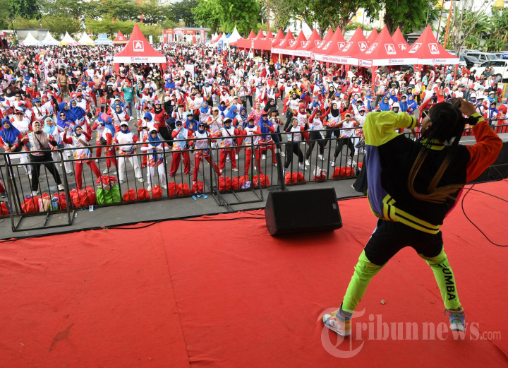 FAMILY DAY - Lebih dari 5000 peserta memadati area parkir timur Surabaya Plaza Surabaya pada gelaran "Family Day Fun Walk Alfamidi Surabaya 2024", Minggu (22/9/2024). Kegiatan dalam rangka ulang tahun Alfamidi yang ke-17 ini diisi dengan berbagai kegiatan untuk keluarga serta anak anak, juga bazar bagi tenant serta stan umkm. (SURYA/HABIBUR ROHMAN)
