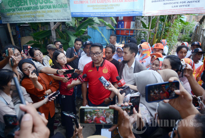 Cagub Jakarta nomor urut satu Ridwan Kamil saat blusukan di Kampung Bayam, Ancol, Jakarta Utara, Kamis (21/11/2024). Ridwan Kamil disambut antusias warga Kampung Bayam. Dalam kunjungan ini, Ridwan Kamil menyempatkan diri berinteraksi dengan warga, mendengarkan aspirasi, dan memberikan solusi untuk permasalahan yang mereka hadapi. Warta Kota/Yulianto