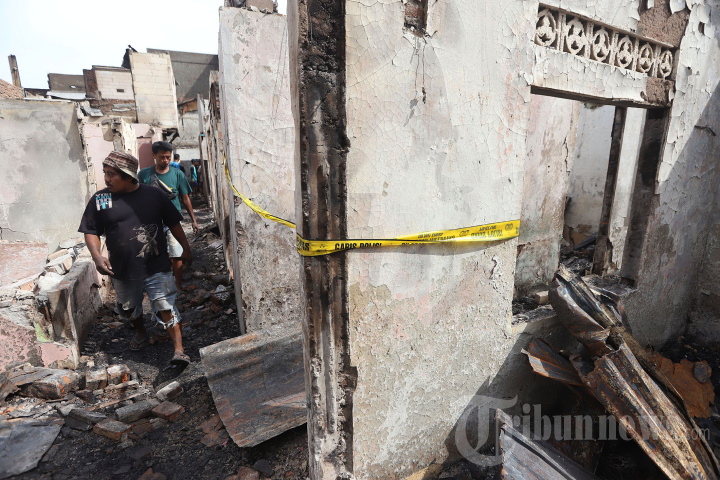 Terlihat garis polisi terpasang pada lokasi kebakaran di Jalan Kebon Kosong, Jakarta Pusat, Rabu (11/12/2024). Berdasarkan data posko hingga saat ini warga terdampak kebakaran di kawasan Kebon Kosong mencapai 1.520 orang dari 594 KK. Tribunnews/Jeprima