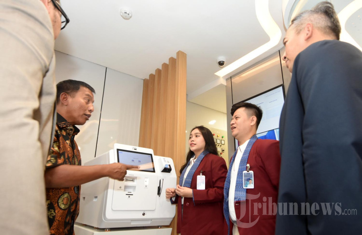 BTN DIGITAL STORE - Rektor Universitas Negeri Surabaya (Unesa) Prof. Dr. Nurhasan (2 kiri) & Direktur Network & Retail Funding BTN, Rully Setiawan (kanan) berbincang di area BTN Digital Store KCP Digital Unesa Lidah Wetan, Jumat (21/11/2025). Layanan baru ini mengusung konsep self-service dengan superstaf yang memungkinkan nasabah menyelesaikan hampir seluruh transaksi perbankan secara mandiri dengan pendampingan petugas bila diperlukan. Peluncuran ini menjadi bagian dari ekspansi layanan digital BTN di Surabaya &? perluas layanan digital bagi mahasiswa & dosen. SURYA/AHMAD ZAIMUL HAQ