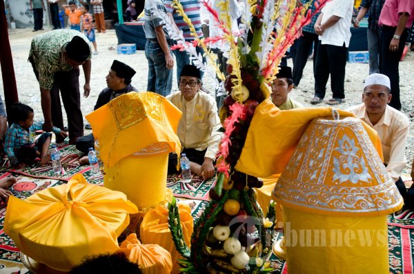 Warga menyantap hidangan yang disediakan pada peringatan Maulid Nabi Muhammad SAW di Masjid Baabunnajah, Gampong Surien, Kecamatan Jaya Baru, Banda Aceh, Kamis (24/1). Tradisi perayaan maulid yang jatuh setiap 12 Rabiul Awal dilakukan oleh masyarakat Aceh dengan berbagai cara seperti zikir barzanji, ceramah agama, memberi santunan kepada anak yatim hingga makan kenduri bersama. SERAMBI/M ANSHAR
