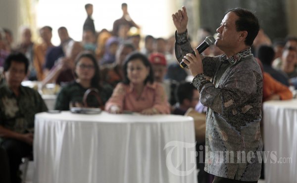 Direktur Utama Lembaga Pengelola Dana Bergulir Koperasi dan Usaha Mikro, Kecil dan Menengah (LPDB KUMKM), Kemas Danial menyampaikan sambutannya sebelum acara Gelar Temu Wicara dalam rangka menyambut persiapan grand opening Bandung Timur Plaza (BTP) di Atrium BTP, Jalan AH Nasution, Ujungberung, Kota Bandung, Selasa (2/4/2013). Acara yang dihadiri Dewan Pembina Koperasi Pedagang Kaki Lima Panca Bhakti (Kopanti) Jabar yang juga Wakil Gubernur Jabar Dede Yusuf, Ketua Kopanti Jabar Andra A Ludin, Direktur Bisnis LPDB KUMKM Warso Widanarto dan Developer Panca Multi Niaga Pratama Stevanus Kusnadi, juga melibatkan para pedagang dan PKL yang menempati mal tersebut. (TRIBUN JABAR/GANI KURNIAWAN)