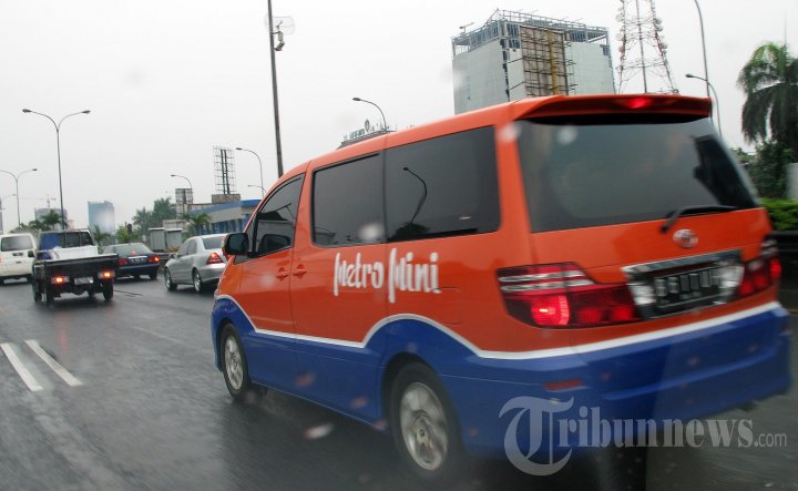 Mobil mewah Alphard dengan warna dan logo senada Bus Metro Mini melintas di jalan tol Jakarta Outer Ring Road (JORR) ruas Pasar Minggu, Jumat (25/10/2013). Warna mobil itu adalah oranye di bagian atas dan biru di bagian bawah dilengkapi logo Metro Mini. (Warta Kota/Alex Suban)