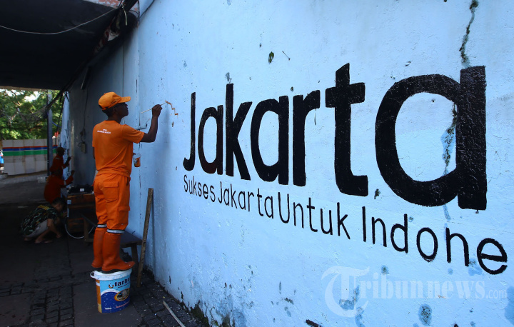 Petugas PPSU Kelurahan Kebon Manggis, membuat mural di kawasan Matraman, Jakarta Timur, Rabu (21/12/2022). Pembuatan mural tersebut bertujuan untuk mempercantik Ibukota dengan penuh warna-warni oleh seni lukis. (Warta Kota/Angga Bhagya Nugraha)
