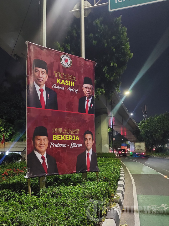 Jelang transisi kepemimpinan politik nasional pada 20 Oktober 2024 mendatang, muncul spanduk, baliho dan banner bertuliskan Terima Kasih Jokowi-Maruf, Selamat Bekerja Prabowo-Gibran di sejumlah jalan utama kota Jakarta. Spanduk dan baliho ini bermunculan lebih kurang sejak sepekan jelang pelantikan presiden dan wakil presiden terpilih 2024-2029 Prabowo Subianto-Gibran Rakabuming Raka. TRIBUNNEWS/HO