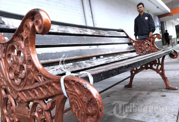 Bangku Taman Rusak di Jalan Naripan Kota Bandung