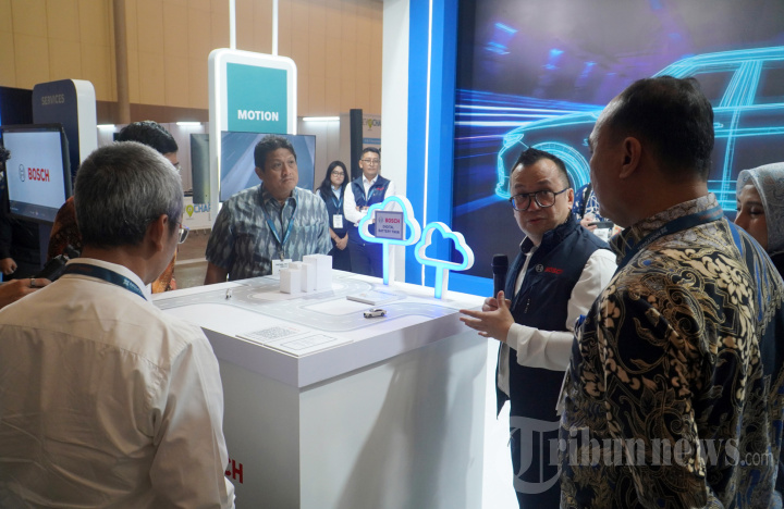 MOBILITAS CERDAS - Senior Sales Manager Power Solutions Bosch Indonesia Reynold Rumambi (tengah), menjelaskan inovasi terbaru Bosch di sektor mobilitas kepada pengunjung ajang Mobility Live Indonesia 2025 di Jakarta, Kamis (6/11/2025). Kehadiran Bosch dalam pameran ini menjadi wujud komitmen perusahaan dalam mendukung transformasi mobilitas di Indonesia melalui empat pilar utama, yaitu ADAS, Energi, Motion, dan Layanan. Bosch menilai Indonesia tengah berada pada momentum penting menuju evolusi mobilitas cerdas yang lebih aman, efisien, dan berkelanjutan. Warta Kota/Yulianto