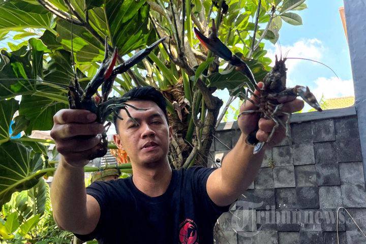 Pembudidaya lobster air tawar melakukan perawatan di Lobster Air Tawar Malang, Jawa Timur, Senin (26/8/2024). Lobster Air Tawar Malang melakukan budidaya lobster untuk di konsumsi serta hewan peliharaan dan dijual dengan harga Rp 200 ribu hingga Rp 250 ribu perkilogram. SURYA/PURWANTO