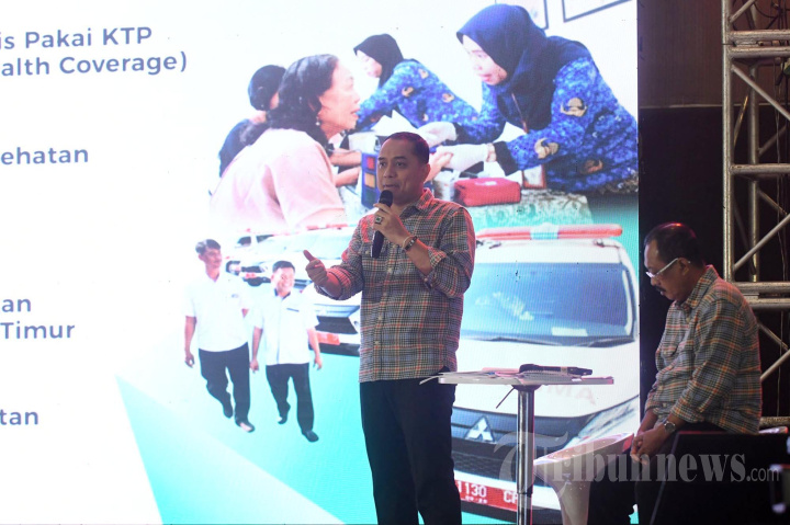 DEBAT PERTAMA - Calon Walikota Eri Cahyadi dan Wakil Walikota Surabaya Armuji pada "Debat Publik Pertama" Calon Walikota dan Wakil Walikota Surabaya tahun 2024 di Dyandra Convention Hall Surabaya, Rabu (16/10/2024). Pasangan Eri Armuji ini merupakan pasangan tunggal Calon Walikota dan Wakil Walikota Surabaya.