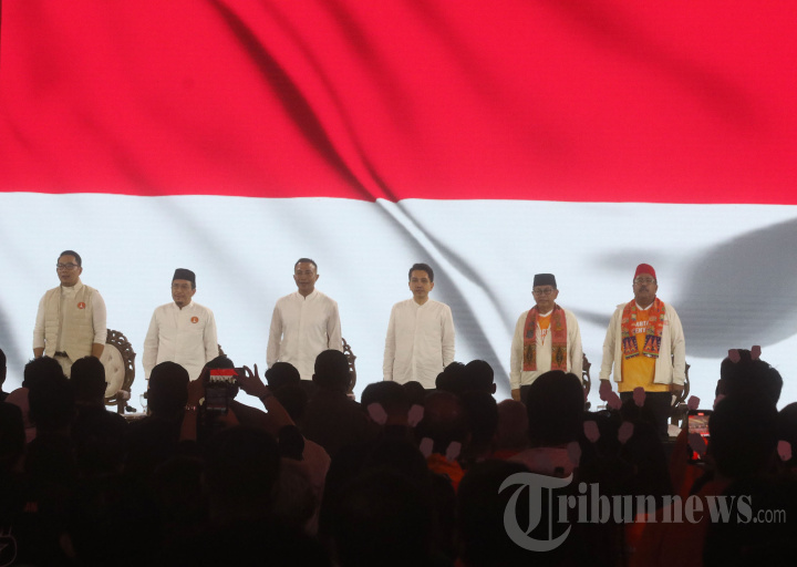 Komisi Pemilihan Umum (KPU) Jakarta menggelar debat perdana Calon Gubernur (Cagub) dan Calon Wakil Gubernur (Cawagub) Jakarta di Jiexpo Kemayoran, Jakarta Pusat, Minggu (6/10/2024). Adapun tiga paslon Pilkada Jakarta 2024 yang akan melaksanakan debat perdana Ridwan Kamil-Suswono, Dharma Pongrekun-Kun Wardana, dan Pramono Anung-Rano Karno. Warta Kota/Yulianto